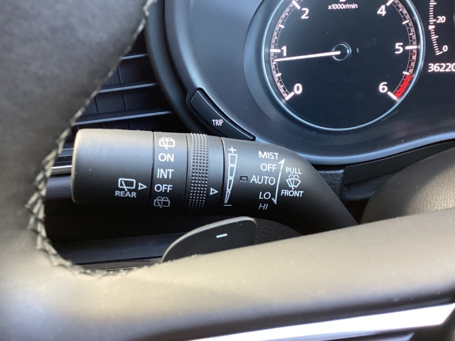 レバーをAUTOの位置にしているとき、レインセンサーが雨を感知すると、雨量に応じてワイパーが自動で作動してくれるオートワイパーを装備!設定変更で非作動にすると、間欠作動に固定されます。