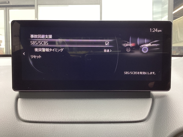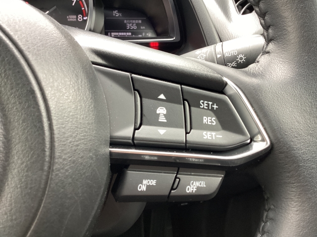 マツダレーダークルーズコントロール付き♪前の車の速度や車間距離を認識し、設定した速度内で車間距離を自動調整・維持することで追従走行を行い、高速道路などでドライバーの負担を軽減します♪