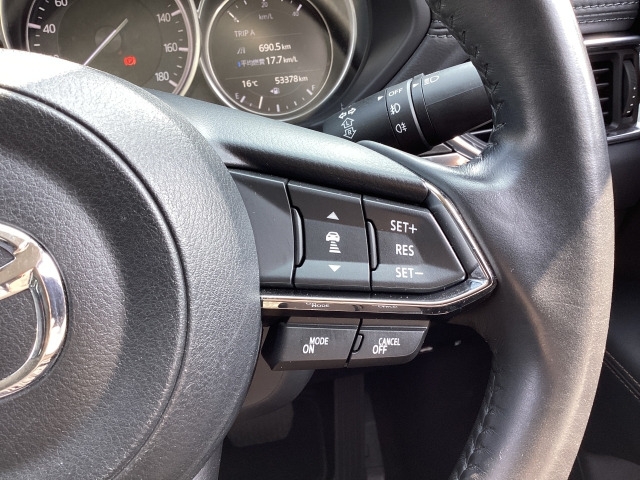 MRCC(マツダレーダークルーズコントロール)は先行車との車間を維持しながら追従走行を行い、長距離でのドライバー負担を軽減させてくれます。