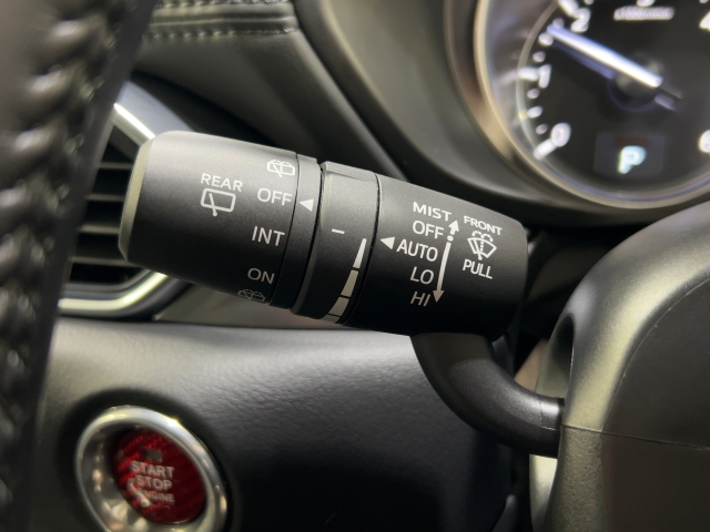 レバーをAUTOの位置にしているとき、レインセンサーが雨を感知すると、雨量に応じてワイパーが自動で作動してくれるオートワイパーを装備!設定変更で非作動にすると、間欠作動に固定されます。