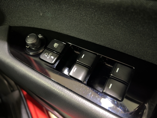 全席のパワーウィンドーはオート機構付きになります。ドアミラーはトランスミッターに連動して自動格納するオートミラーを装備しております。