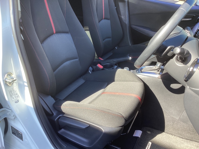 立体感があり、シート中央部とサイド部をくっきりと分断したサポート性の高い形状のシートが「人馬一体」感を強く演出しています。