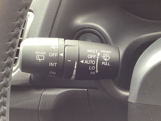 レバーをAUTOの位置にしているとき、レインセンサーが雨を感知すると、雨量に応じてワイパーが自動で作動してくれるオートワイパーを装備!設定変更で非作動にすると、間欠作動に固定されます。