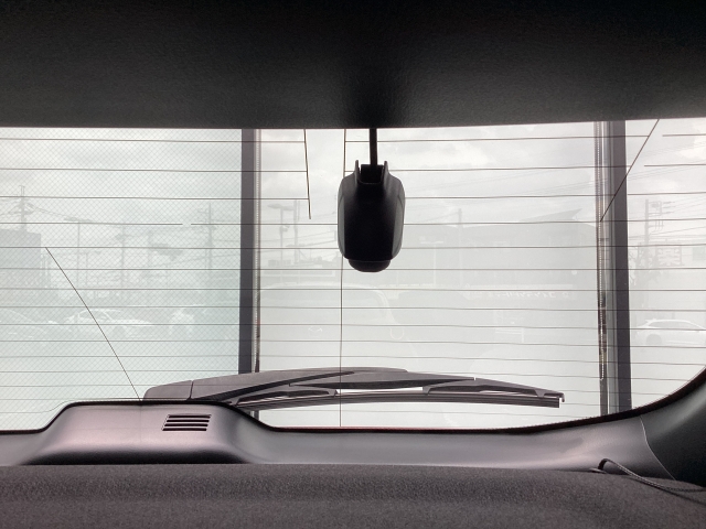 リア側ドライブレコーダー。運転中の映像・音声などを記録して、交通事故やトラブルが起きた時の正確な状況把握に役立つドライブレコーダーが装着されています。