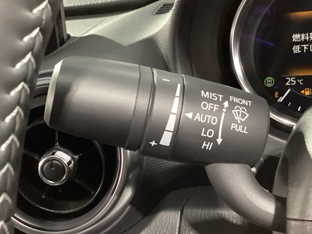 レバーをAUTOの位置にしているとき、レインセンサーが雨を感知すると、雨量に応じてワイパーが自動で作動してくれるオートワイパーを装備!設定変更で非作動にすると、間欠作動に固定されます。