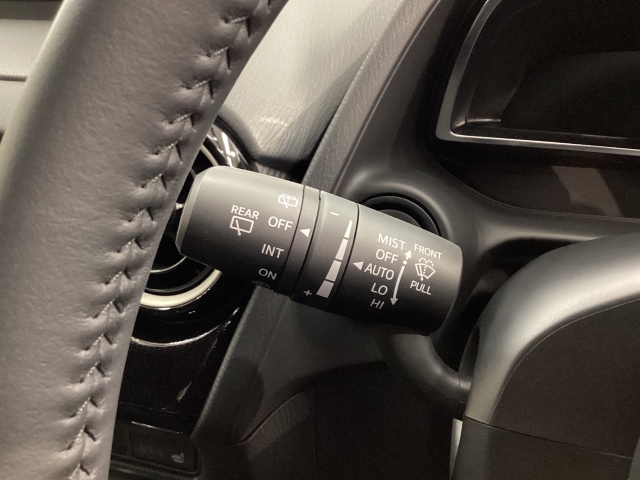 レバーをAUTOの位置にしているとき、レインセンサーが雨を感知すると、雨量に応じてワイパーが自動で作動してくれるオートワイパーを装備!設定変更で非作動にすると、間欠作動に固定されます。