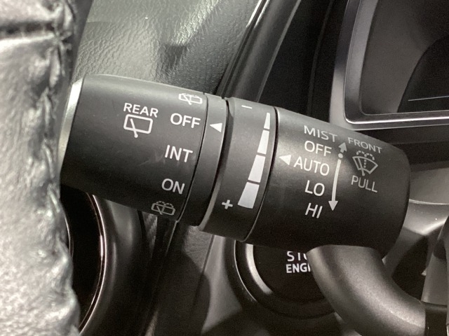 レバーをAUTOの位置にしているとき、レインセンサーが雨を感知すると、雨量に応じてワイパーが自動で作動してくれるオートワイパーを装備!設定変更で非作動にすると、間欠作動に固定されます。