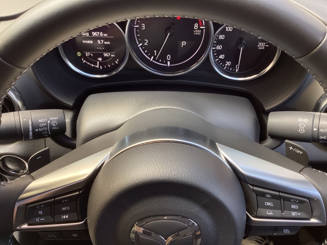 ドライビング中に目線をあまり変えずに済む位置に装備された3連メーターは運転に必要な情報が見やすくセンターのタコメーターが0rpmが下層からふけあがるところなど気持ちをより高めてくれます