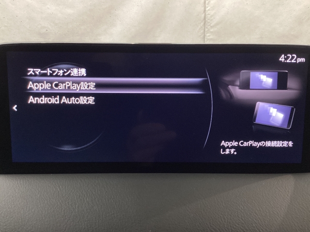 Apple Carplay・Android Auto対応!マツダ コネクト(コマンダーコントロール)でスマートフォンを操作して、通話、音楽を聴いたり、マップで目的地を調べることができます。