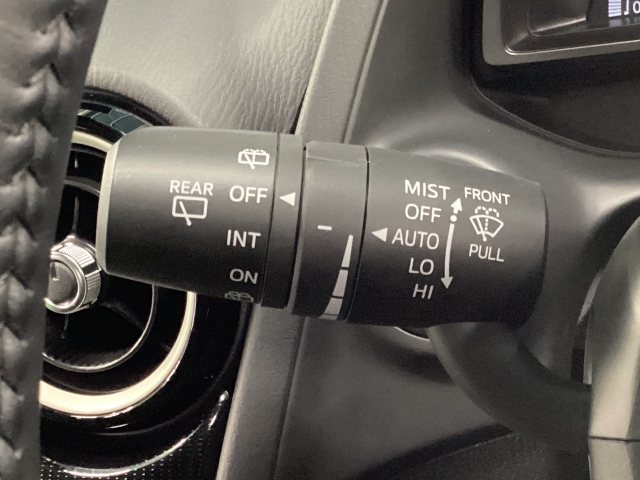 レバーをAUTOの位置にしているとき、レインセンサーが雨を感知すると、雨量に応じてワイパーが自動で作動してくれるオートワイパーを装備!設定変更で非作動にすると、間欠作動に固定されます。