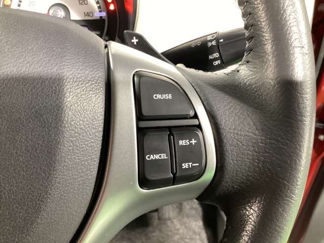 クルーズコントロールをセットすると、アクセルを踏まずに設定速度で定速走行ができ、高速時に於けるドライバーの負担軽減を図り快適走行ができます。