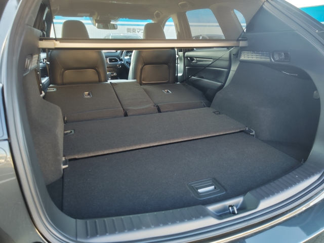 リアシ-トを倒すとこんなに広く使えるんですョ!奥行きもあって、大きな荷物もへっちゃらですョ!!必見です!