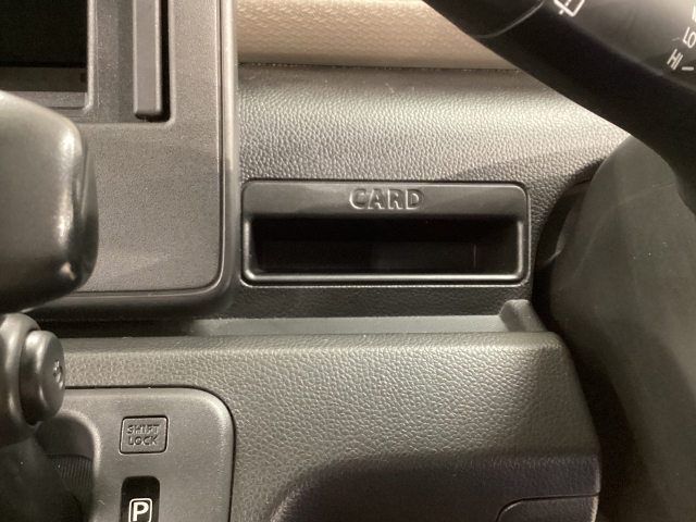 シフトレバーの前にカード入れがございます。ガソリンのカードなどご自由にお入れください。