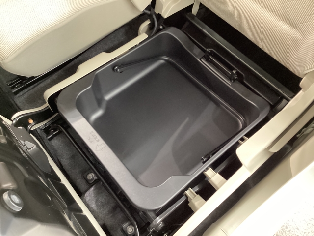 助手席下には脱着式のバケツがあります。洗車用具入れなどにお使い頂けます。
