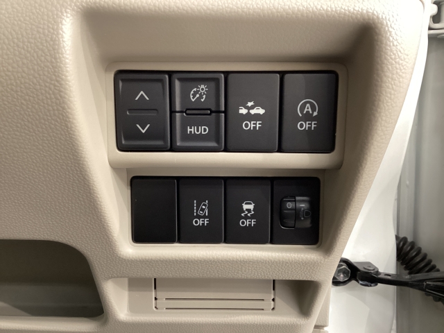 安全装置のスイッチは運転席パネル下に集約されています。任意で切り替え可能なため状況に合わせてお使いください。