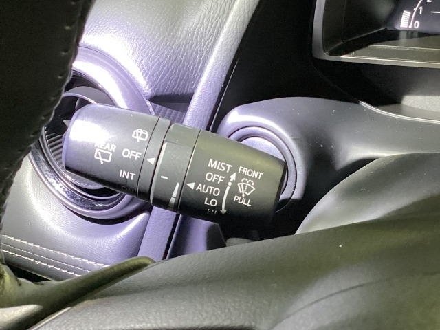 レバーをAUTOの位置にしているとき、レインセンサーが雨を感知すると、雨量に応じてワイパーが自動で作動してくれるオートワイパーを装備!設定変更で非作動にすると、間欠作動に固定されます。