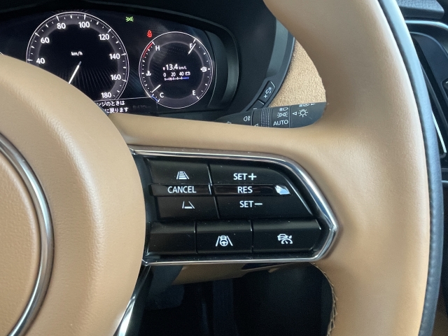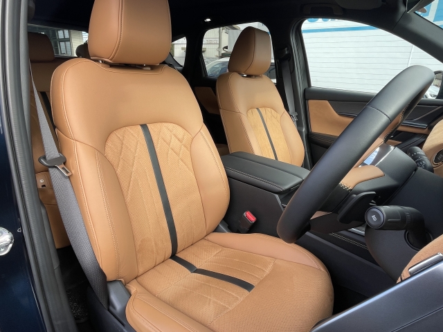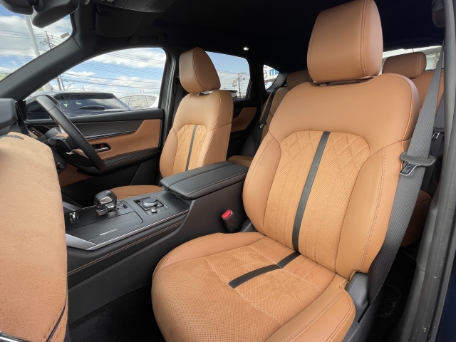 フロントシートはタン色レザーシート。心地よいフィット感と程よいホールド性能を両立させ、今までになく快適にドライブを楽しんでいただける、マツダ自慢のシートです!