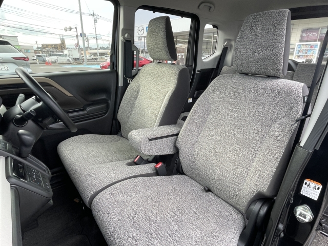 フロントシートは左右がつながったベンチ形状です。中央にはアームレストも装備されており、快適にお使いいただけます!