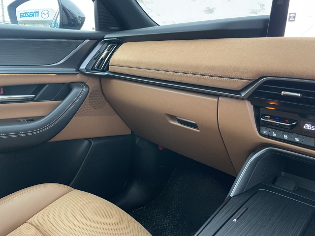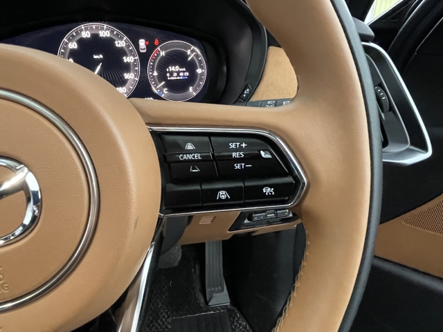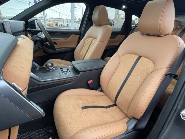 フロントシートはタン色レザーシート。心地よいフィット感と程よいホールド性能を両立させ、今までになく快適にドライブを楽しんでいただける、マツダ自慢のシートです!