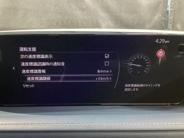 フォワードセンシングカメラで認識した交通標識をディスプレイに表示し、交通標識の見落とし防止を図り、安全運転を支援します。