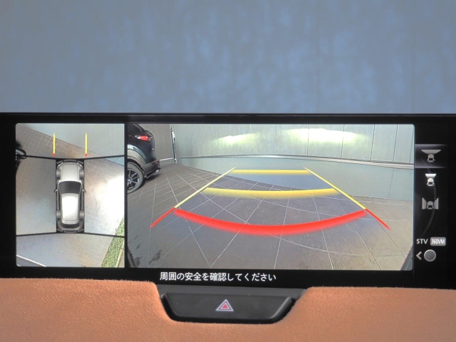 車両の前後左右に備えた計4つのカメラを活用し、車両を上方から俯瞰したようなトップビューのほかフロントビュー・リアビュー・左右サイドビューの映像をセンターディスプレイに表示する360°ビューモニター。