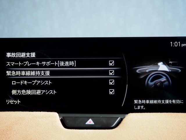 緊急時車線維持支援システムは車線変更の際にハンドル操作をアシストする速報危険回避機能と、路肩の芝生や縁石等を検知し、路外に脱出する際にハンドルアシストをするロードキープアシスト機能を搭載しています