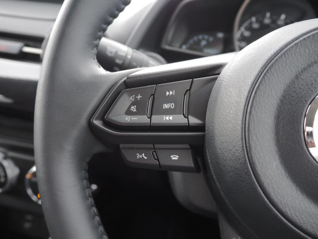 ステアリング左側のスイッチはブルートゥースの電話の着信応答、オーディオのボリューム調整やマルチインフォメーションディスプレイの変更等、様々な操作ができます。