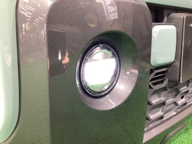 霧の中で点灯させて進行方向の路面を照らしつつ、対向車などに自分の車を知らせる事に役立つフォグランプが装着されています。