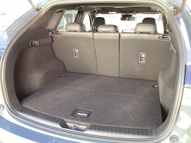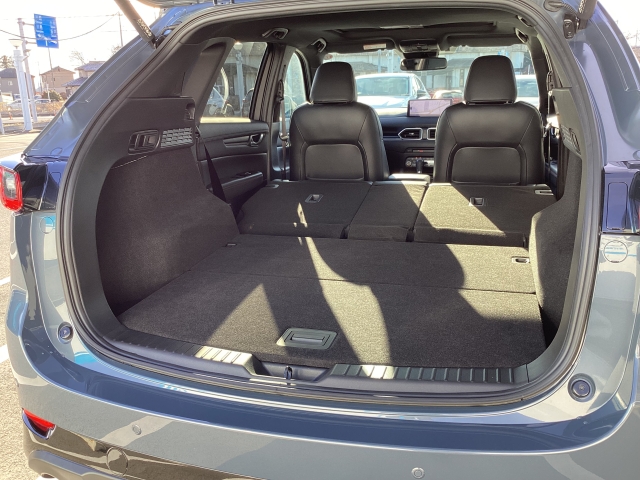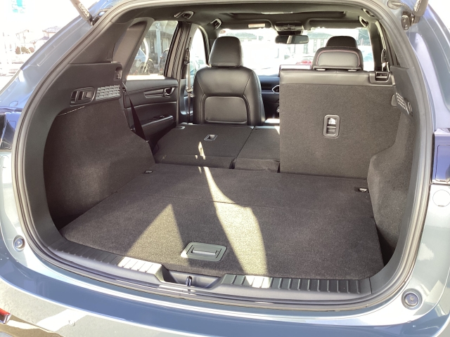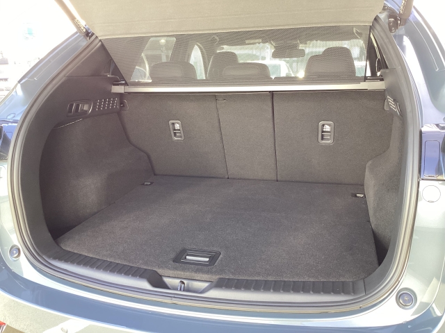 SUVでありながらスポーティなデザインのCX-5はリヤデッキを高くしてトランク容量をキチンと確保。その上でリアウィンドを傾斜させてスタイリッシュなデザインを表現しています。