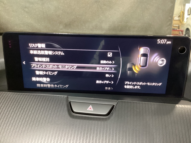 後方左右の死角に入ってしまった車両をセンサーが感知しドライバーにお知らせしてくれるブラインドスポットモニタリングシステム。高速の合流などでも安心できます。