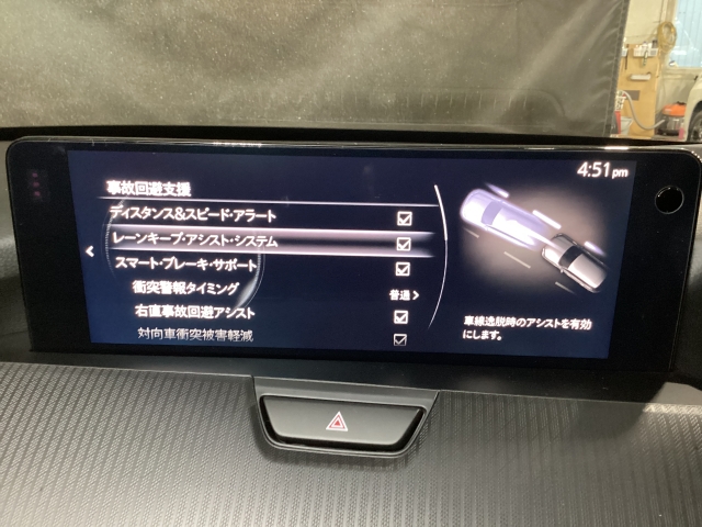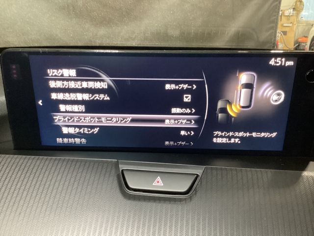 後方左右の死角に入ってしまった車両をセンサーが感知しドライバーにお知らせしてくれるブラインドスポットモニタリングシステム。高速の合流などでも安心できます。