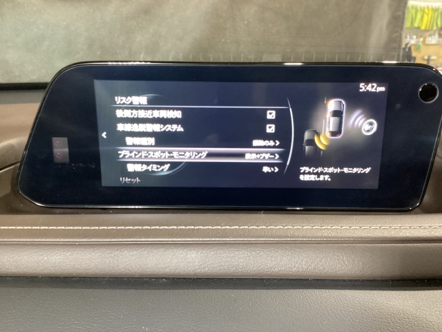 後方左右の死角に入ってしまった車両をセンサーが感知しドライバーにお知らせしてくれるブラインドスポットモニタリングシステム。高速の合流などでも安心できます。