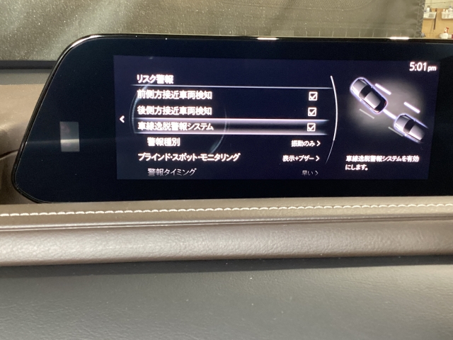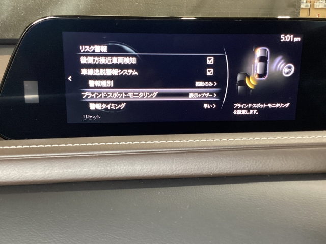 後方左右の死角に入ってしまった車両をセンサーが感知しドライバーにお知らせしてくれるブラインドスポットモニタリングシステム。高速の合流などでも安心できます。