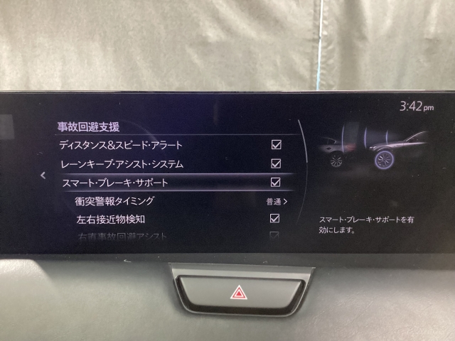 MRCC(マツダレーダークルーズコントロール)は先行車との車間を維持しながら追従走行を行い、長距離でのドライバー負担を軽減させてくれます。