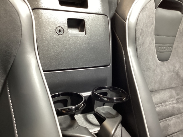 運転席と助手席の間には鍵のかかる収納がございます。オープン時でも安心ですね♪