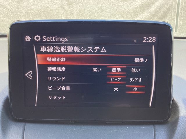 LDWS車線逸脱警報システム搭載。約45キロ以上での走行時、フロントガラスに設置したカメラで車線を認識し、車両がその線を踏み越える可能性があると判断すると、警報音でドライバーに注意を促します。