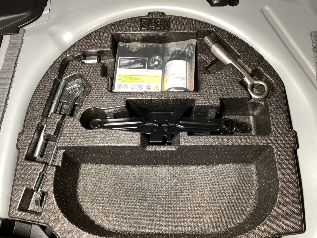 スペアタイヤの代わりに、簡易パンク修理キット搭載。釘が刺さった程度の穴でしたら補修可能です。パンクの箇所や状況によっては補修できない場合もございます。予めご了承下さい。