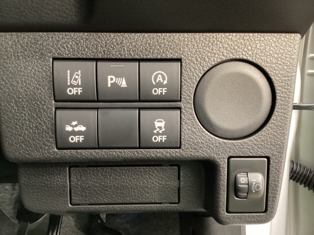 安全装置のスイッチは運転席パネル右下に集約されています。任意で切り替え可能なため状況に合わせてお使いください。