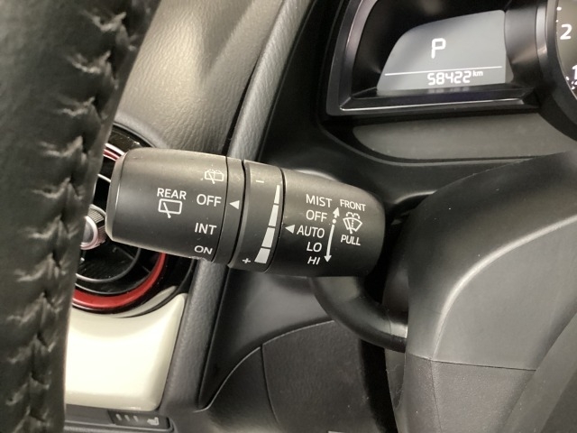 レバーをAUTOの位置にしているとき、レインセンサーが雨を感知すると、雨量に応じてワイパーが自動で作動してくれるオートワイパーを装備!設定変更で非作動にすると、間欠作動に固定されます。
