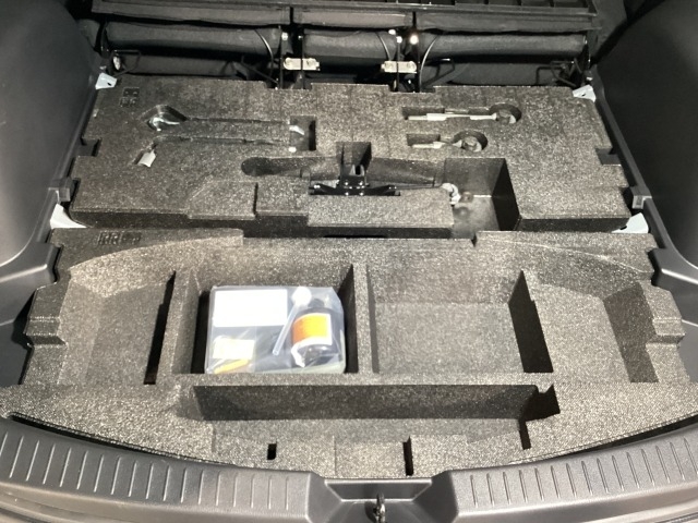 スペアタイヤの代わりに、簡易パンク修理キット搭載。釘が刺さった程度の穴でしたら補修可能です。パンクの箇所や状況によっては補修できない場合もございます。予めご了承下さい。