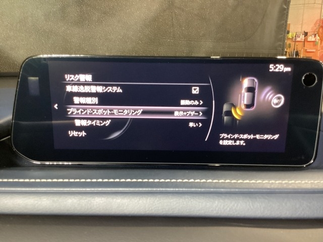 後方左右の死角に入ってしまった車両をセンサーが感知しドライバーにお知らせしてくれるブラインドスポットモニタリングシステム。高速の合流などでも安心できます。