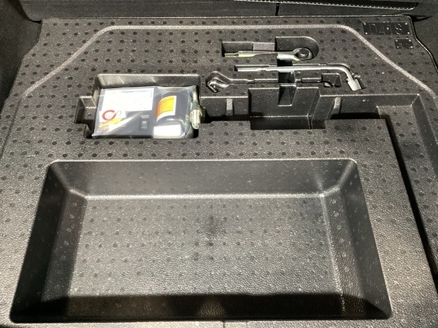 スペアタイヤの代わりに、簡易パンク修理キット搭載。釘が刺さった程度の穴でしたら補修可能です。パンクの箇所や状況によっては補修できない場合もございます。予めご了承下さい。