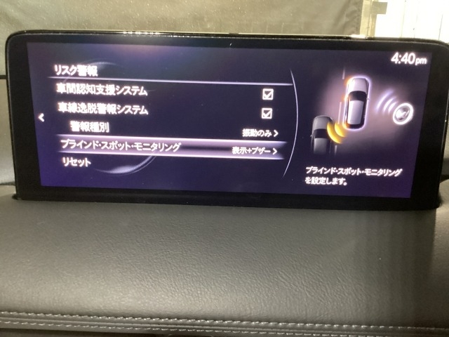後方左右の死角に入ってしまった車両をセンサーが感知しドライバーにお知らせしてくれるブラインドスポットモニタリングシステム。高速の合流などでも安心できます。