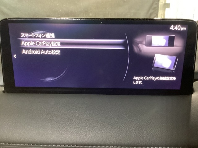 Apple Carplay・Android Auto対応!マツダ コネクト(コマンダーコントロール)でスマートフォンを操作して、通話、音楽を聴いたり、マップで目的地を調べることができます。