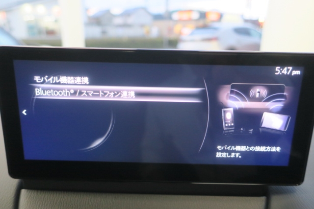 Apple Carplay・Android Auto対応!マツダ コネクト(コマンダーコントロール)でスマートフォンを操作して、通話、音楽を聴いたり、マップで目的地を調べることができます。