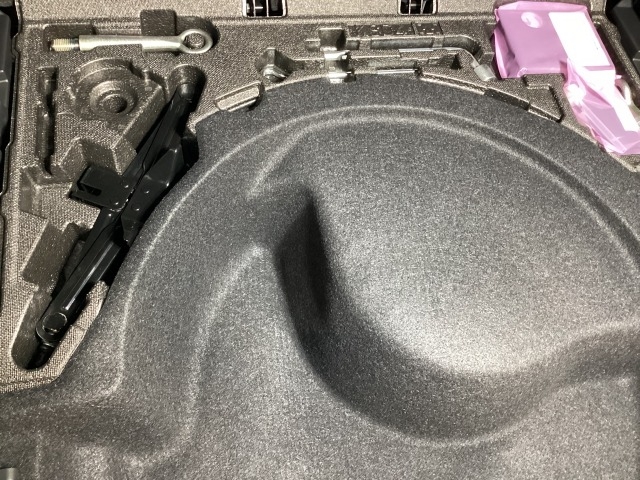 スペアタイヤの代わりに、簡易パンク修理キット搭載。釘が刺さった程度の穴でしたら補修可能です。パンクの箇所や状況によっては補修できない場合もございます。予めご了承下さい。