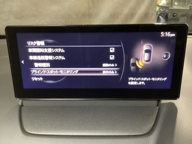 後方左右の死角に入ってしまった車両をセンサーが感知しドライバーにお知らせしてくれるブラインドスポットモニタリングシステム。高速の合流などでも安心できます。