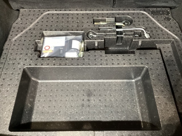 スペアタイヤの代わりに、簡易パンク修理キット搭載。釘が刺さった程度の穴でしたら補修可能です。パンクの箇所や状況によっては補修できない場合もございます。予めご了承下さい。