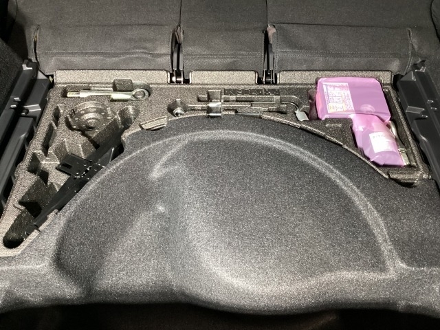 スペアタイヤの代わりに、簡易パンク修理キット搭載。釘が刺さった程度の穴でしたら補修可能です。パンクの箇所や状況によっては補修できない場合もございます。予めご了承下さい。