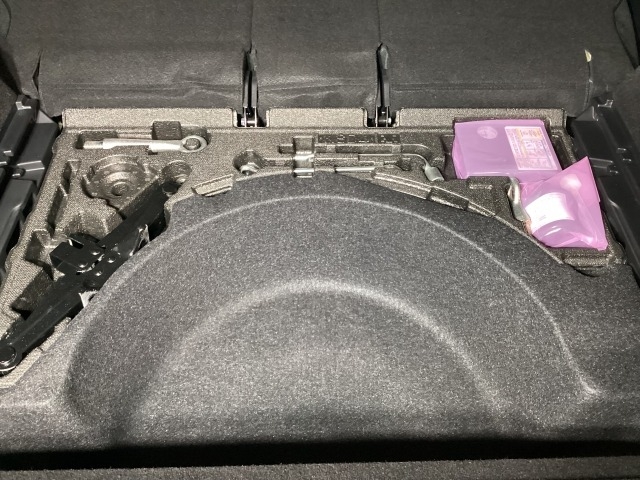 スペアタイヤの代わりに、簡易パンク修理キット搭載。釘が刺さった程度の穴でしたら補修可能です。パンクの箇所や状況によっては補修できない場合もございます。予めご了承下さい。